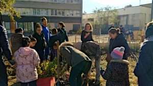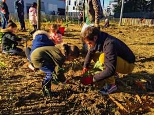 Attention : plantation (très) urbaine ! La plantation Miyawaki de Colombes a été initiée par la nouvelle équipe municipale pour porter la vision du nouvel urbanisme du quartier : au pied de la tour Z, symbole d’un urbanisme historiquement très minéral, une mini-forêt est plantée uniquement avec les riverains : habitants de la tour, enfants du centre de loisirs Langevin-Wallon tout proche, passants, et même quelques courageux volontaires de la maison de retraite voisine !