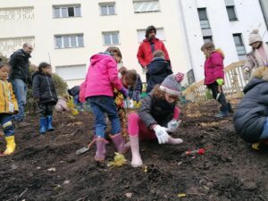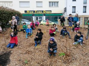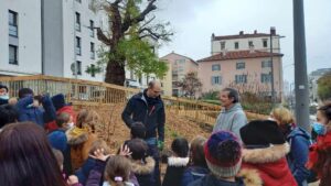 La plus urbaine des plantations « Miyawaki » lyonaises. Un îlot de nature de 400m² s’y épanouit pour le plus grand bonheur des riverains depuis Novembre 2021. Environ 40 espèces y ont été plantées par 150 personnes (classe de primaire et maire de Lyon compris), majoritairement locales (quelques exceptions ont été faite à la méthode suite à des substitutions par le pépiniériste).
