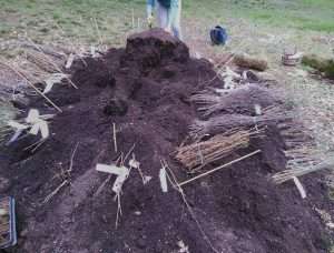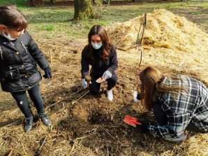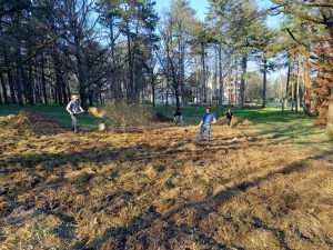 Riche de 30 espèces végétales locales (liste ci-dessous) et mesurant 200m², cette plantation a été réalisée avec la participation d’environ 120 bénévoles, y compris une classe de primaire. Elle fait l’objet d’un suivi régulier qui va s’intensifier en 2024 (densité, relevés de biodiversité, croissance…). La densité de 3 arbres par m² s’y est maintenue et la large majorité des plants ont survécu aux phases de gels et de sècheresse. Les plus hauts ormes dépassent les 4m, moins de 3 ans après leur mise en place.