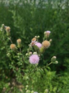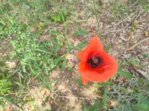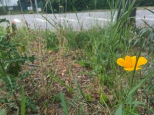 Quelques petites fleurs égayent le travail de désherbage sur site