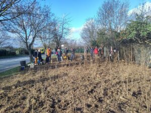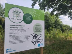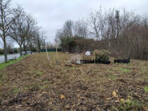 Troisième plantation réalisée avec le département du Val-de-Marne à Chevilly-Larue, sur une surface totale de 800m², au bord d’une route. La plantation participative s’est déroulée sur un temps limité de deux jours, les agents du département ont ensuite repris le flambeau pour terminer la plantation de la parcelle.