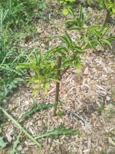 Après avoir planté un arbre, il est important de pailler le sol pour qu’il ne reste pas nu. Le paillage permet de maintenir l’humidité, de freiner la croissance des adventicies, et nourrit le sol. On peut choisir de paille ou, comme ici, du broyat organique, ou mulch
