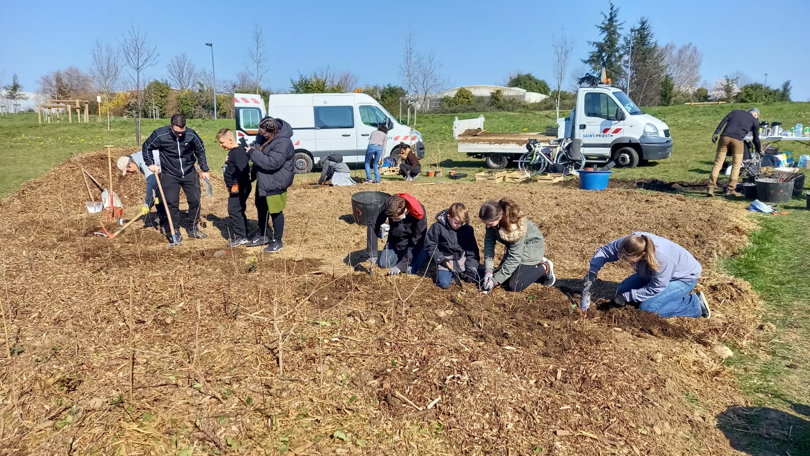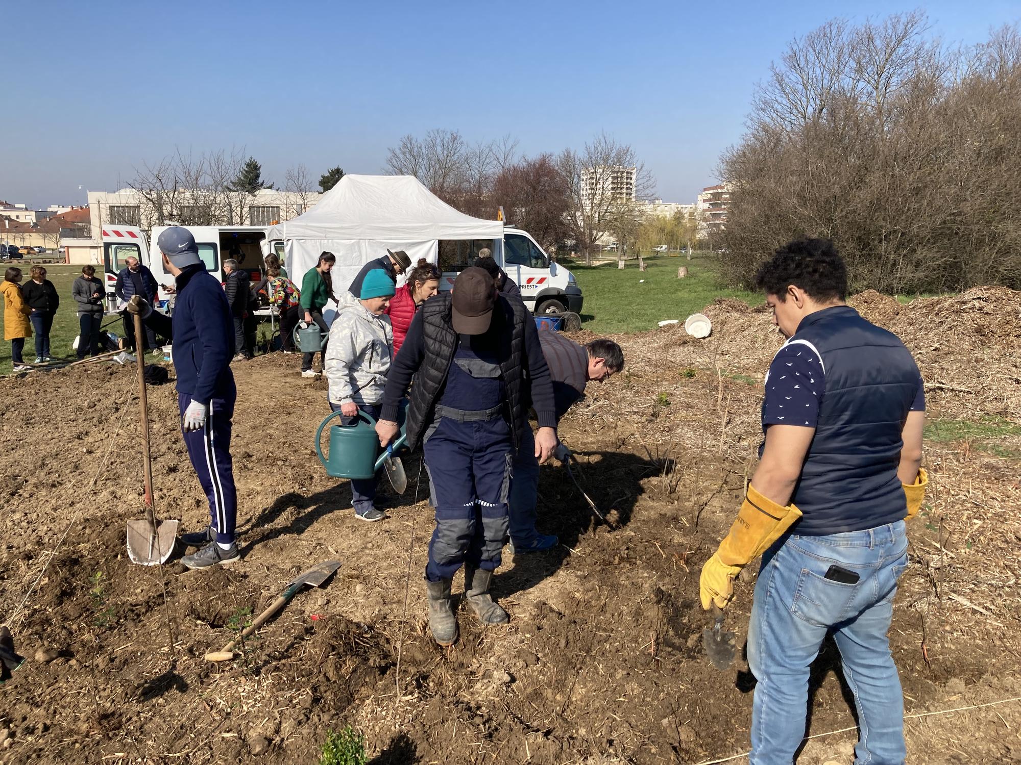 The planting took place in two stages in Saint-Priest’s Parc Nelson Mandela: the first in February 2022 on a 300m² plot, welcoming over a hundred volunteers, and the second in November of the same year, on two islands of 100 and 150m², welcoming around 80 people. Growth is going well on the whole, even if it is in full sun and has suffered from drought and heat over the past two summers.