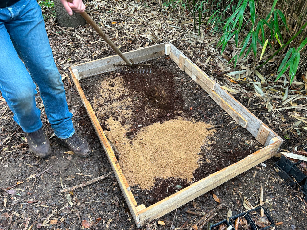 C’est une bonne question ! Effectivement, il faut prendre des précautions vis-à-vis des racines. C’est pour cela qu’on a pensé au sable avec le terreau au début, et qu’on utilise une griffe pour mélanger avec la terre de dessous : du coup, c’est plus facile à arracher que si c’était de l’argile. Il faut donc que le terrain soit adapté.