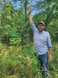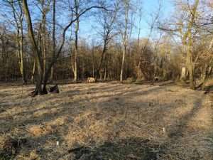 existante. C’est une expérience qui s’éloigne du protocole classique de la méthode Miyawaki, où le travail du sol constitue une étape fondamentale de la plantation. Nous n’avons pas constaté une mortalité plus forte sur le site, mais une croissance ralentie les premières années suivant la plantation, par rapport à nos autres expérimentations : cela peut être dû à cette problématique du sol (le sol, bien que constitué de litière forestière, garde une composante sableuse forte du fait de l’origine artificielle bois), mais aussi à la luminosité beaucoup plus faible dans cette petite clairière que sur un site ouvert. Un deuxième site a été planté en 2023 à quelques centaines de mètres, sur un terrain plus dégagé, pour tenter de comprendre si c’est la luminosité ou le sol qui explique plutôt cette croissance ralentie.