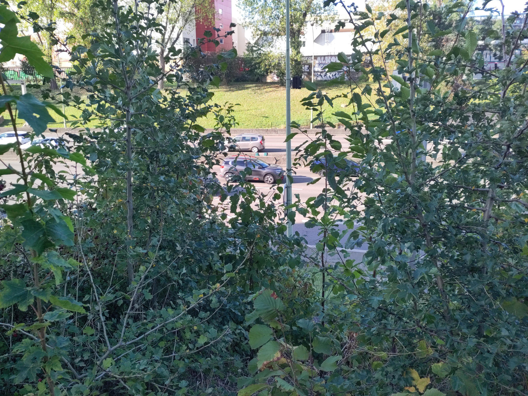 Un an et demi après la plantation, les herbes spontanées concurrencent encore sérieusement les jeunes arbres de ce site. Si la croissance de l’ensemble est moins impressionnante que sur d’autres sites, la biodiversité foisonne et les plantes à fleurs accueillent un nombre considérable d’insectes ainsi que des oiseaux (palombes notamment).